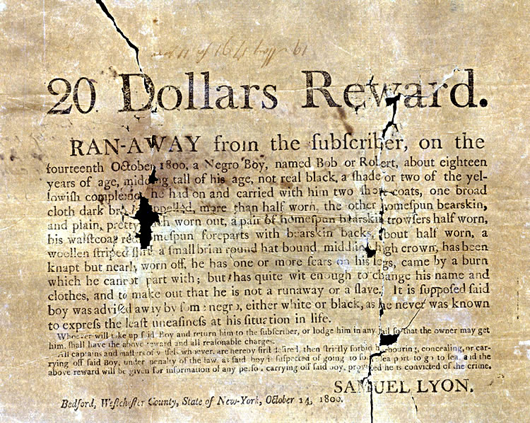 Reward Poster for Runaway Slave, October 14, 1800
